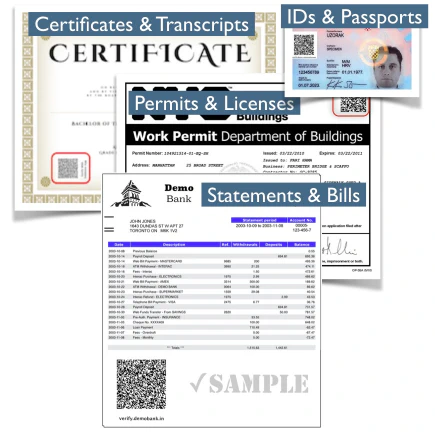 One elegant way is to use Qryptal’s secure QR code technology, which enables the documents to have unique QR codes that capture all the key details and can be scanned and verified for authenticity. These can work for all kinds of documents such as licenses and permits, receipts and invoices, certificates, IDs etc